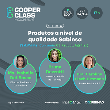 Assista a última aula gravada: “Produtos a nível de qualidade Sabinsa (SabiWhite, Curcumin C3 Reduct e AgeFlex), com Ms. Isabella Del Bosco, Bruna Dezzotti e Dra. Caroline Flach Ortmann.