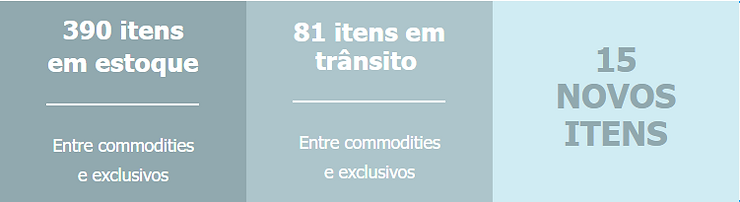 *Os itens em trânsito variam entre, reposição e itens novos.